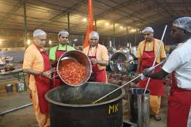 Every morning, our dedicated cooks and volunteers arrive before dawn to prepare the day’s feast. Fresh vegetables are washed, spices are ground, and love is infused into every dish. Nothing is reheated – everything is made fresh that day. Our Kitchens are fully equiped, cleaned and maintained daily.